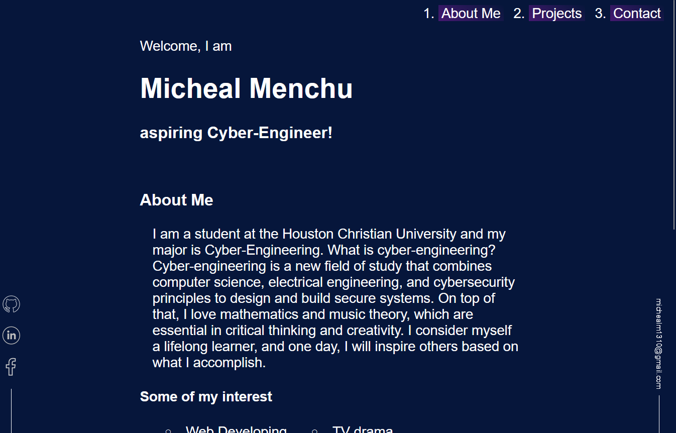 I am a student at the Houston Christian University and my major is Cyber-Engineering. What is cyber-engineering? Cyber-engineering is a new field of study that combines computer science, electrical engineering, and cybersecurity principles to design and build secure systems. On top of that, I love mathematics and music theory, which are essential in critical thinking and creativity. I consider myself a lifelong learner, and one day, I will inspire others based on what I accomplish.